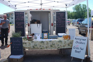 Many of you are farmer's market aficionados. We love them, too. For us we are so appreciative of the venue they provide for us to market our farm's produce directly to the customer...no middle man. Since the first Saturday in June Craig has been at the market on River Drive in Wausau each weekend. Three of those weekends there have been fresh chicken offered.
